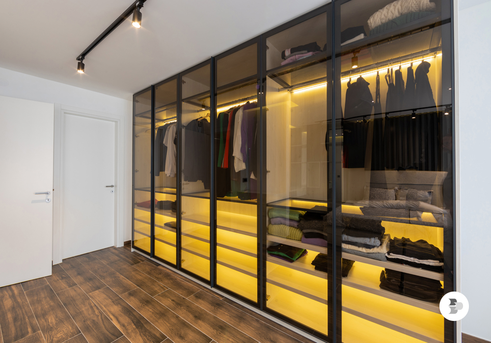 Logo após defina o estilo que combina com sua decoração e avalie a quantidade de roupas e acessórios a serem armazenados. Uma observação importante é prestar atenção no espaço necessário de abertura das portas. O recomendado é deixar 60 cm livres à frente do móvel, para a circulação das pessoas.
