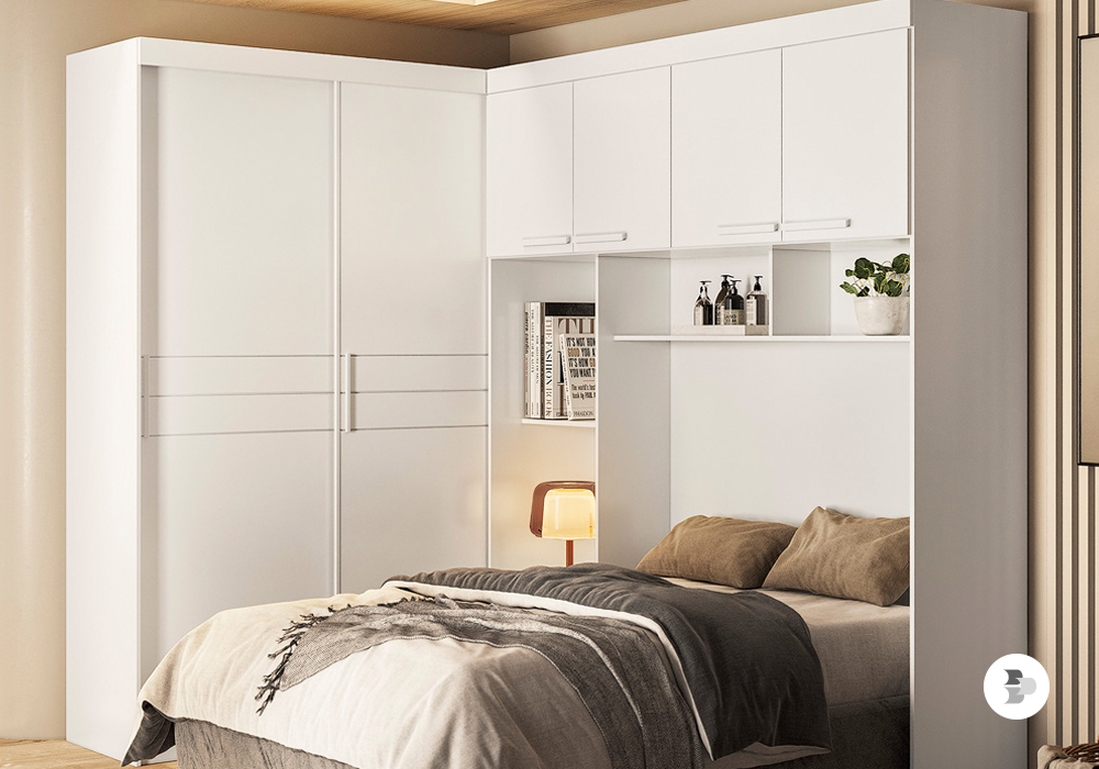 Projetado para otimizar o espaço em quartos menores, encaixando-se perfeitamente nos cantos.