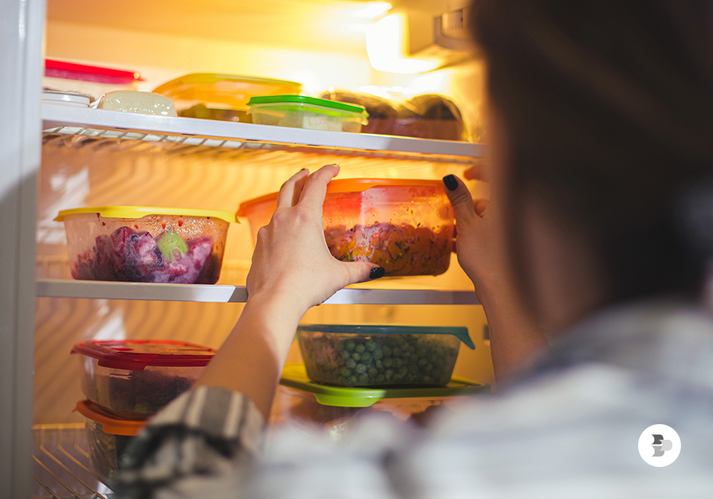 Pequenas sobras de comida podem ser armazenadas em potes de plástico ou vidro. Prefira os transparentes e em formato quadrado ou retangular, pois se encaixam facilmente nos cantos e auxiliam na otimização de espaço, como os organizadores empilháveis. Procure etiquetar todos os recipientes, tanto na geladeira quanto no congelador.