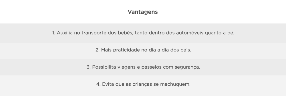 É um item que traz maior praticidade na rotina dos pais. Isso porque facilita o transporte do bebê conforto entre o carro e outros locais.