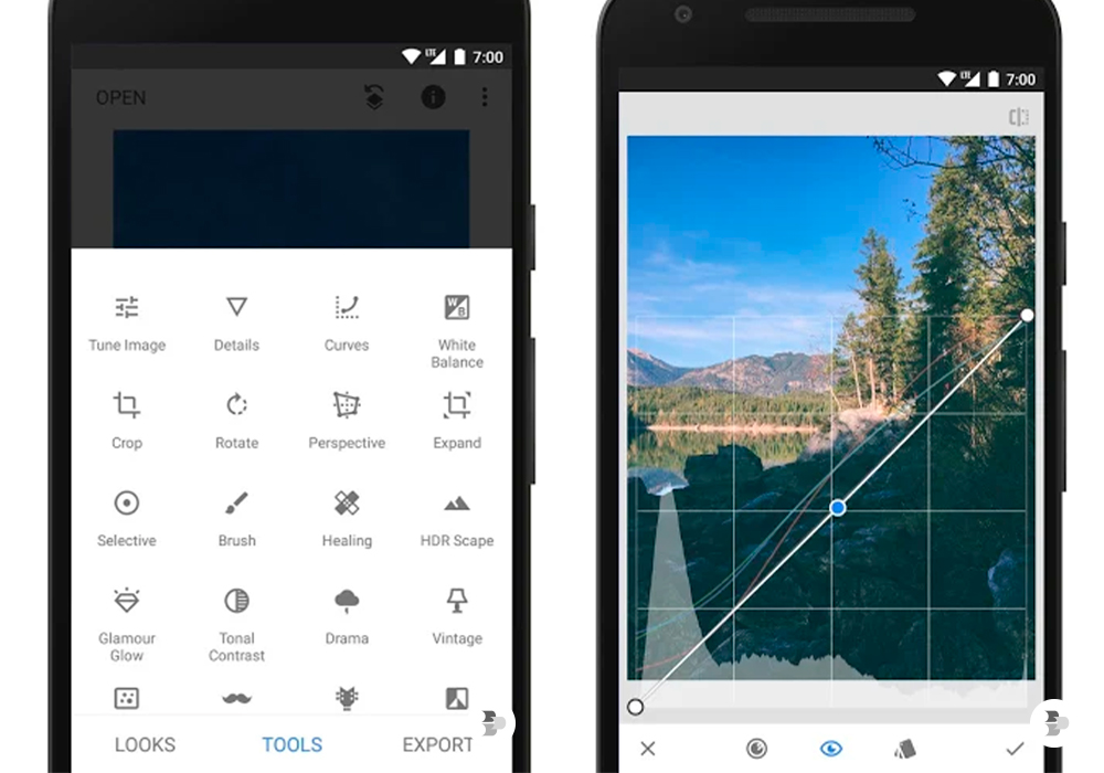 Esse é o app de edição do Google, e também um dos melhores disponíveis atualmente. Isso porque com ele você pode fazer quase todo tipo de modificação nas fotos, indo desde cortes e ajustes técnicos até a edição de foco, controle de cor, contraste e brilho. Além disso, ele conta com muitos filtros para colocar nas fotos e deixá-la do jeito que deseja. E todo mundo pode baixar de graça e sem a necessidade de comprar a versão premium.