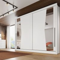 Guarda Roupa Casal 2 Portas de Correr (1 Ripada e 1 c/ Espelho) e 4 Gavetas Atlanta Branco - Europa