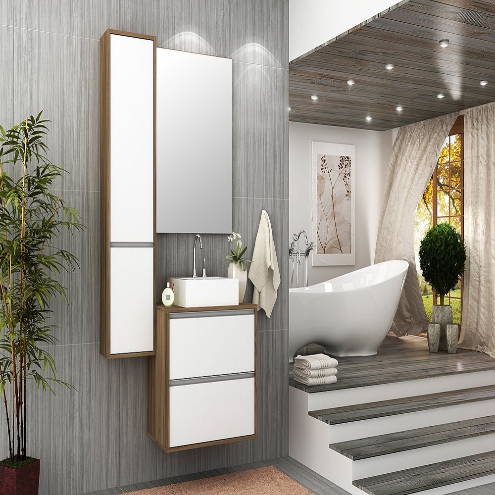 Gabinete para Banheiro Cuba e Armário com Espelho Firenze 90(Cód. COL_64335)